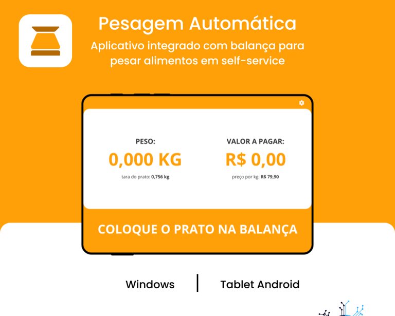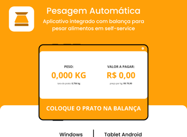 Aplicativo integrado com balança para pesar alimentos em self-service