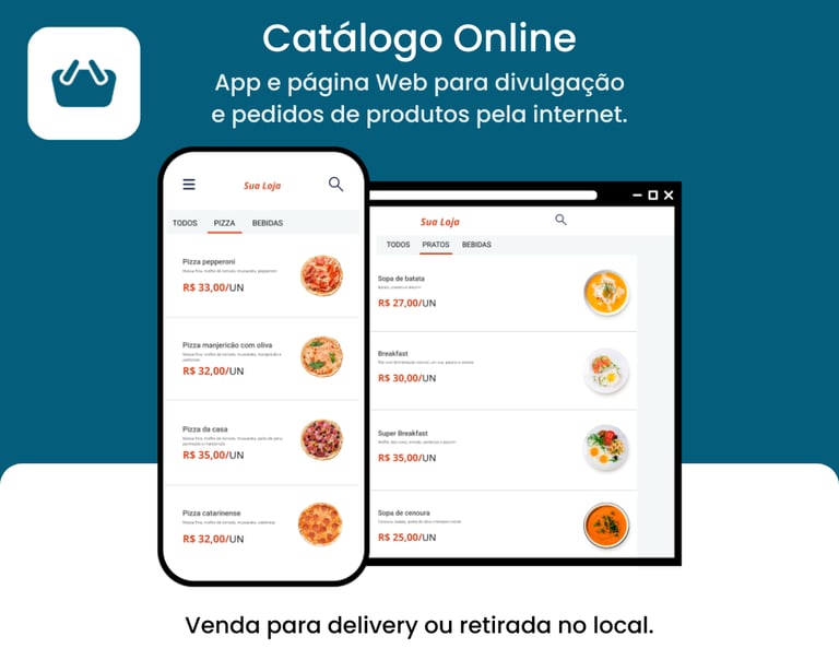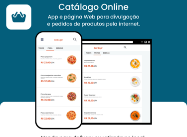 Os produtos do seu comércio disponíveis em página web e aplicativo próprio
